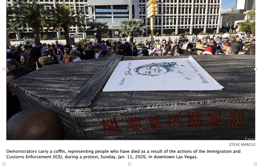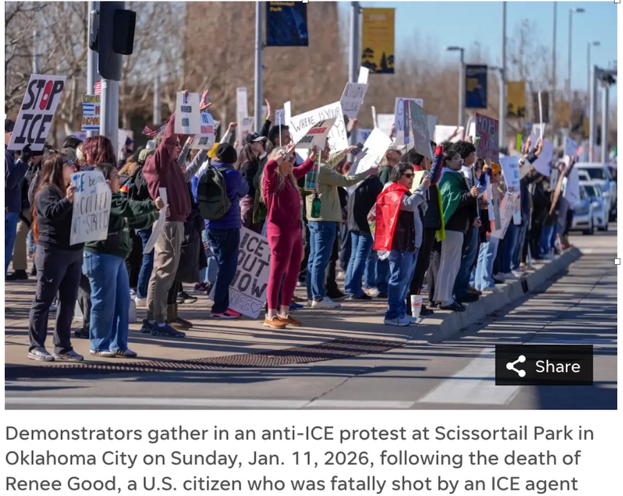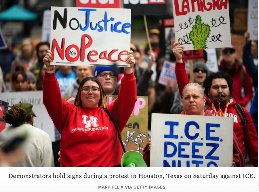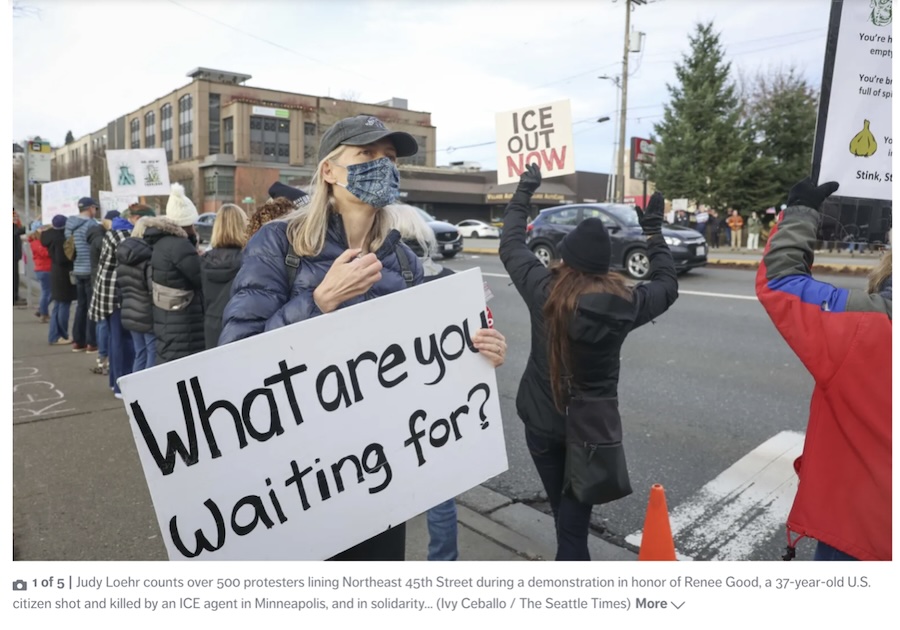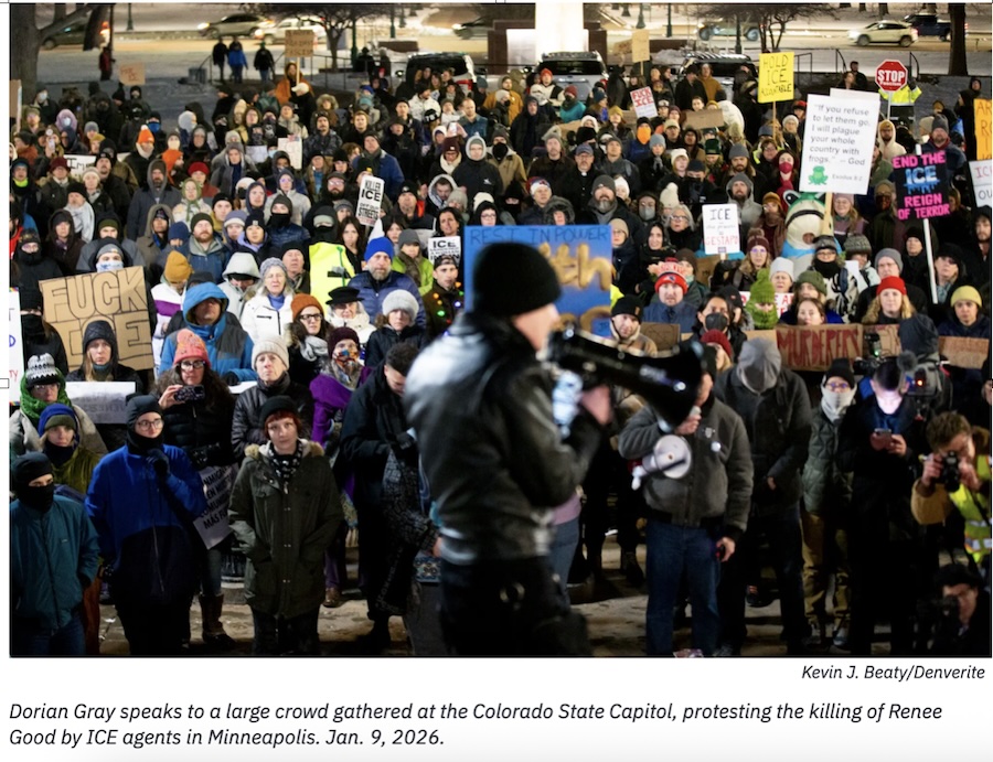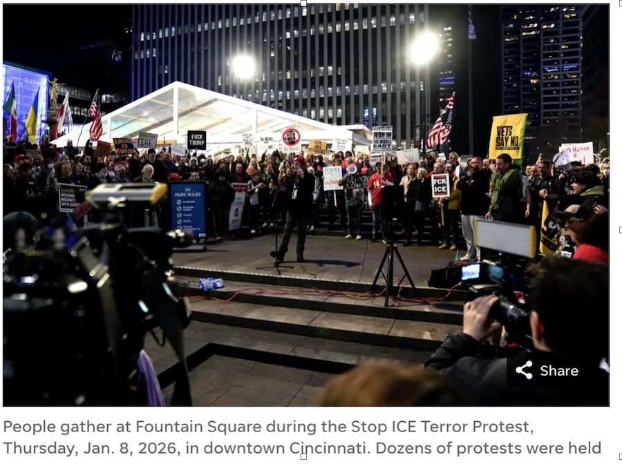Protesting the newest atrocity by Trump’s masked police, Americans took to the streets in all 50 states. The police, called ICE (Immigration and Customs Enforcement) killed demonstrator Renee Nicole Good on January 7.