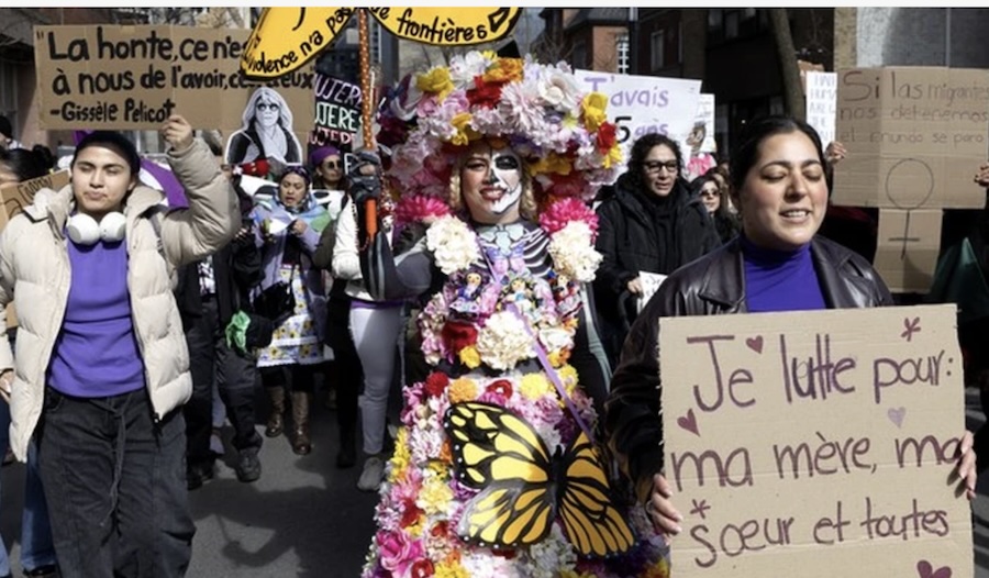 A large crowd marches in downtown Montreal on International Women’s Day, Sunday, March 8, 2026. Photo by Allen McInnis /Montreal Gazette