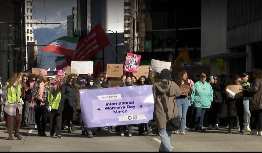 Upwards of 100 people gathered in downtown Vancouver to mark International Women’s Day.