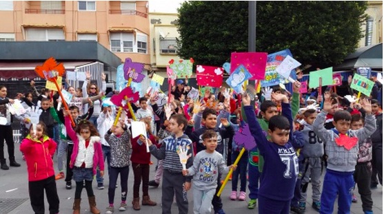 The students read messages about respect for life, rejection of violence, generosity, understanding, preservation of the environment and natural resources, solidarity and equality. In addition, with the patronage of Municipal Sports, their schools organized a charity race to benefit the NGO Save the Children. The primary school Palomares, Cuevas del Almanzora, has also supported this NGO to raise funds for the people of the Sahel. Previously, students have studied in their classrooms about the food crisis and the living conditions in the African region. . .